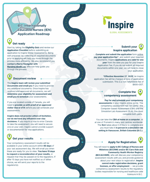 The Inspire IEN Pathway is designed to assist nurses who are educated outside of Canada on their journey to gaining nursing registration in British Columbia.
